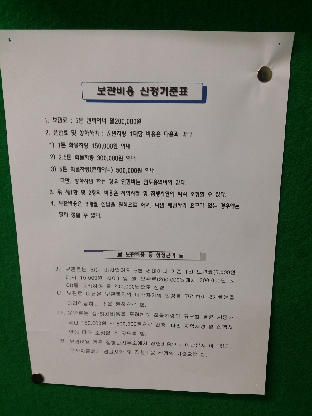 집행관 본집행시 물류 "보관비용 산정기준표" 페이지 정보 작성자 (220.♡.167.96) 작성일18-03-29 18:55 조회3,673회 댓글0건 관련링크 이전글 다음글 목록 본문 집행관은 인도집행을 하면서 집행목적물(건물) 이외의 동산(채무자 소유의 집기류)를 외부로 반출하여 물류업체에 보관을 하도록 하거나 집행채권자의 요청에 의하여 보관장소를 정하여 보관하도록 합니다.외부 물류업체에 보관시 집행관이 적용하는 "보관비용 산정기준표" 입니다. 댓글목록 등록된 댓글이 없습니다. 이전글 다음글 목록